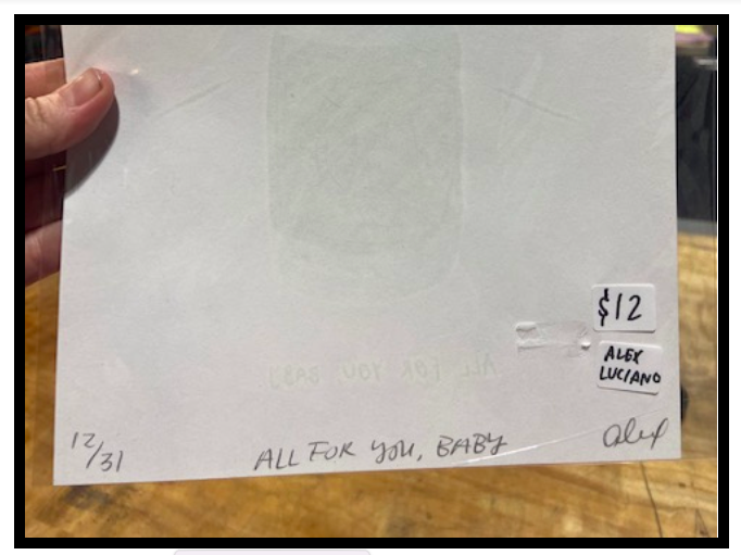 Your art/wares each labeled with the price and your name OR your business name (please pick one and be consistent across all items).